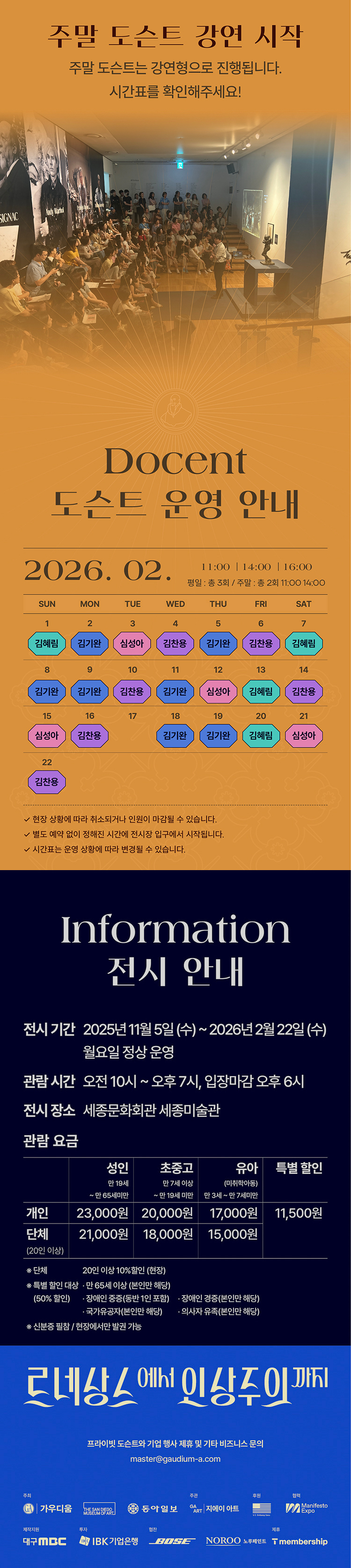 관람시간 : 오전 10시 00분 ~ 오후 7시 00분 (입장마감 오후 6시 00분) 휴관일 없음