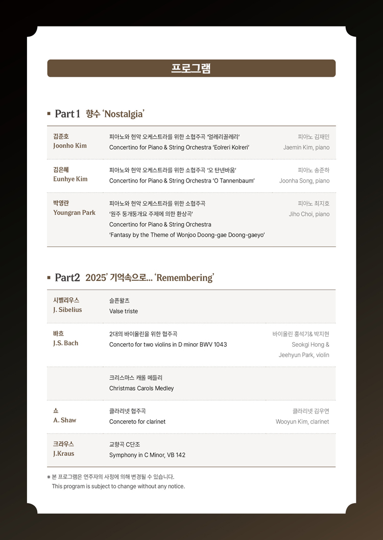 2025 서리풀 송년음악회 〈Adieu, 2025〉