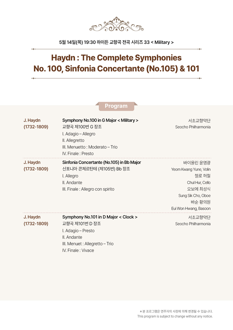 서리풀 전곡 연주 시리즈 〈하이든 교향곡 시리즈 33 'Military'〉