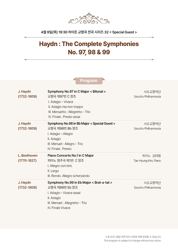 서리풀 전곡 연주 시리즈 〈하이든 교향곡 시리즈 32 ' Special Guest '〉