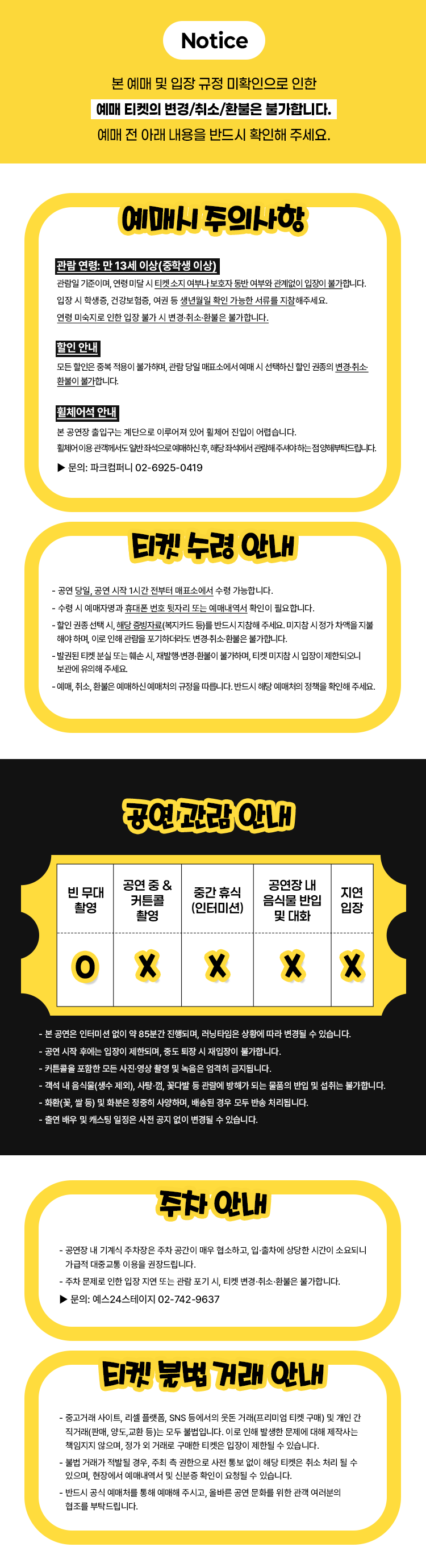 - 특정 기간, 특정 공연일에만 판매하는 가격이 있으니 예매 전 [가격 전체 보기]를 눌러 확인해 주세요.