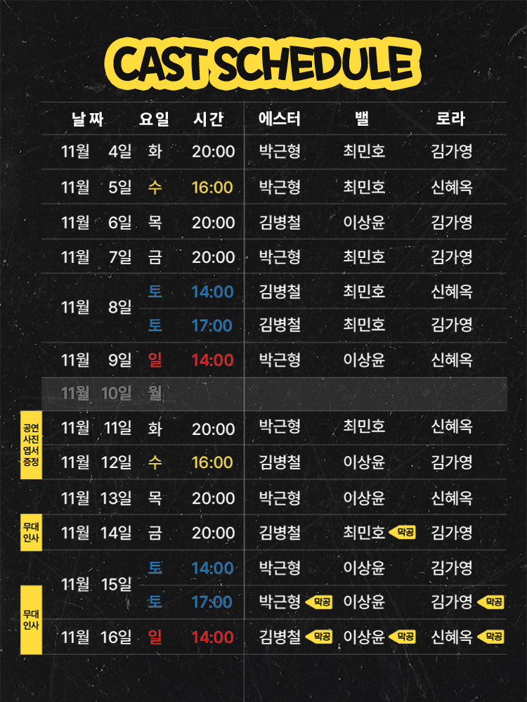 * 11월 2일(일), 11월 9일(일) 17:00 공연없음