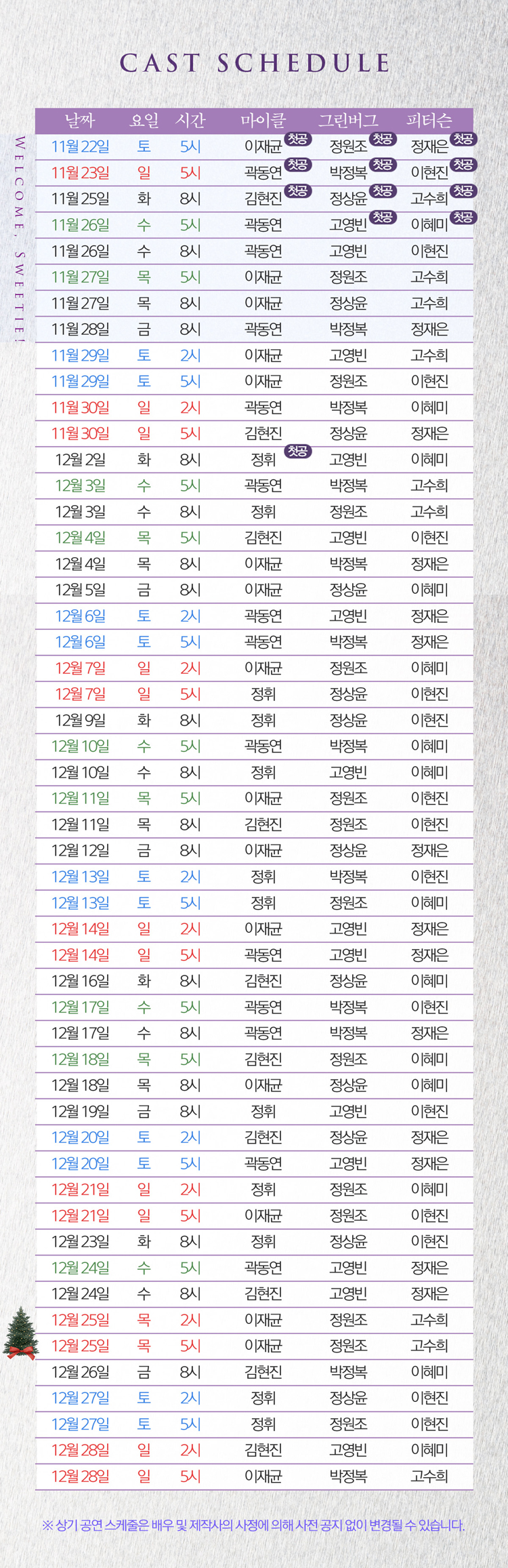 (11/22(토), 11/23(일) 5시 공연만 있음)
