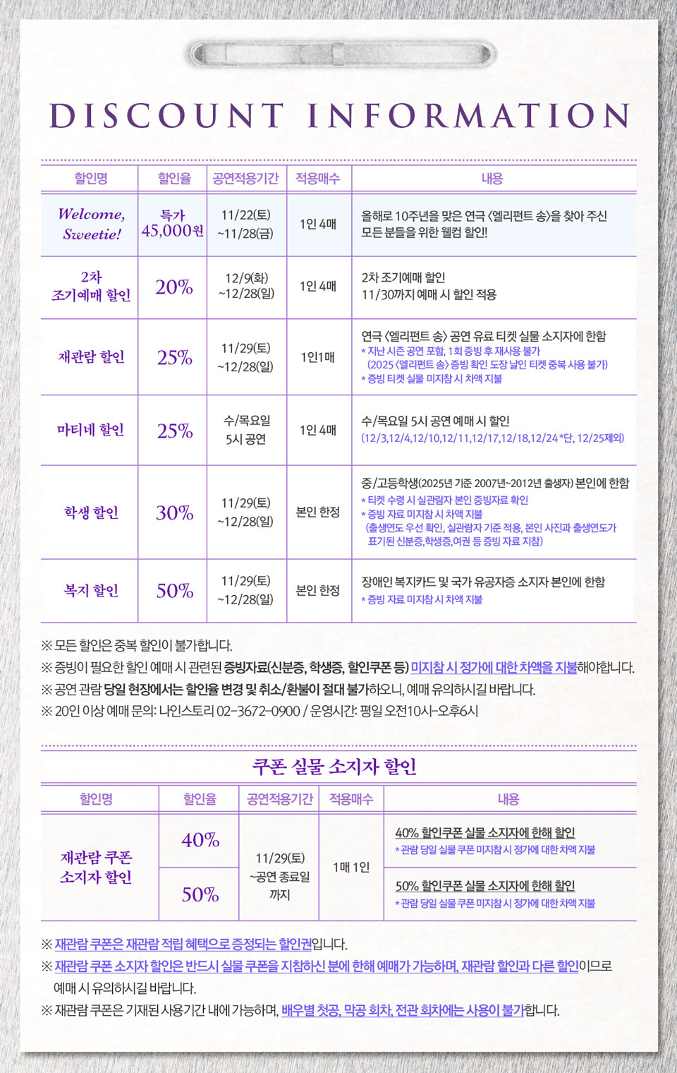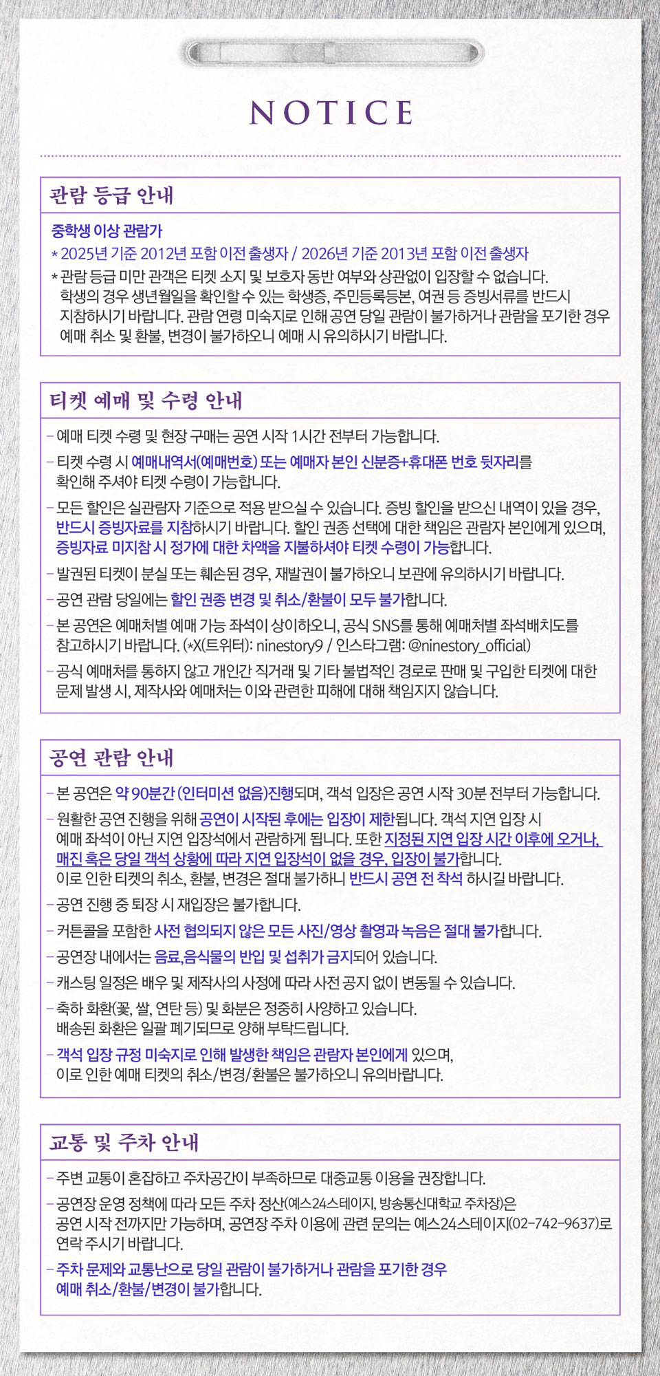 - 특정 기간, 특정 공연일에만 판매하는 가격이 있으니 예매 전 [가격 전체 보기]를 눌러 확인해 주세요.
