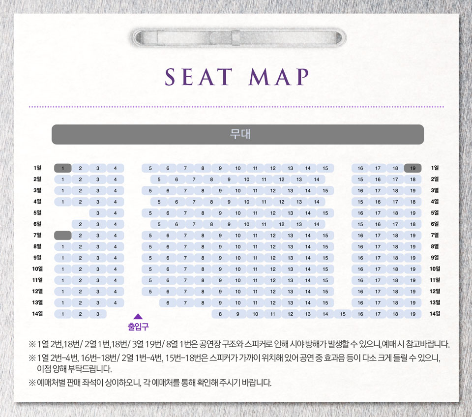 화,금요일 8시 / 수,목요일 5시, 8시 / 토,일요일 및 공휴일 2시, 5시 / 월 공연 없음