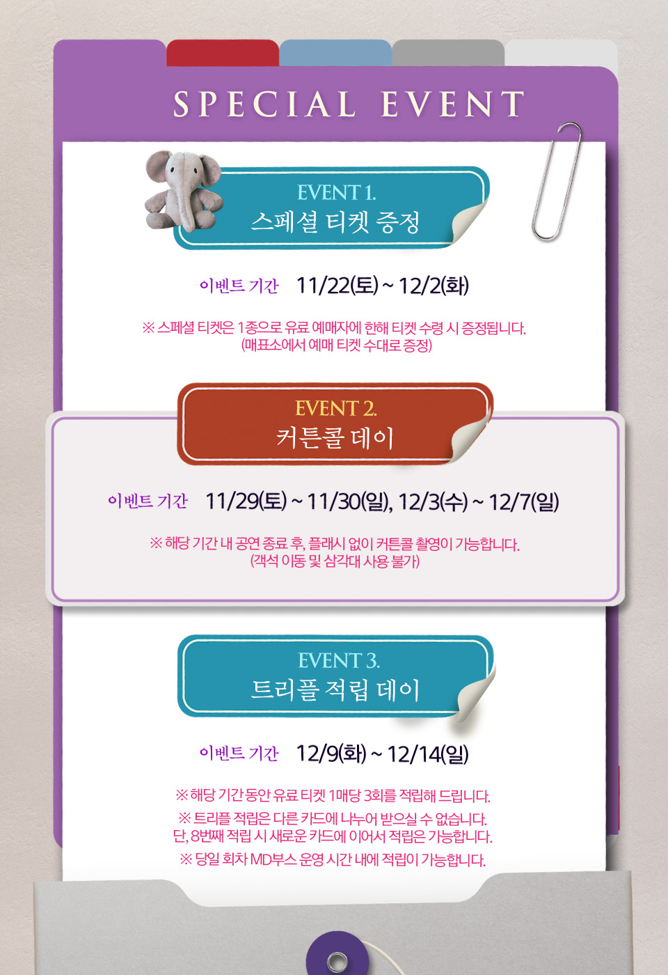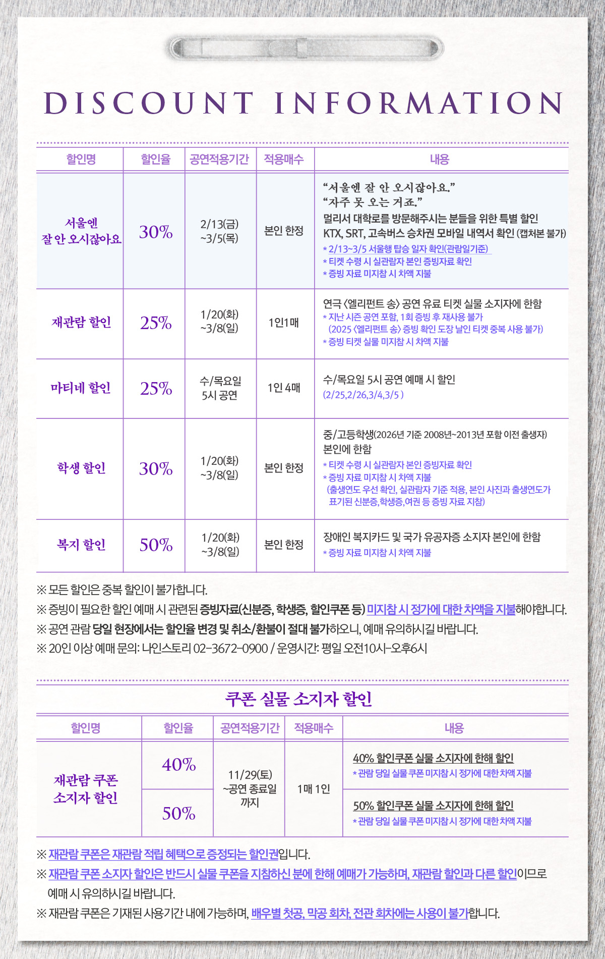 - 관람일 2일전 ~ 취소기한까지: 티켓금액의 30%