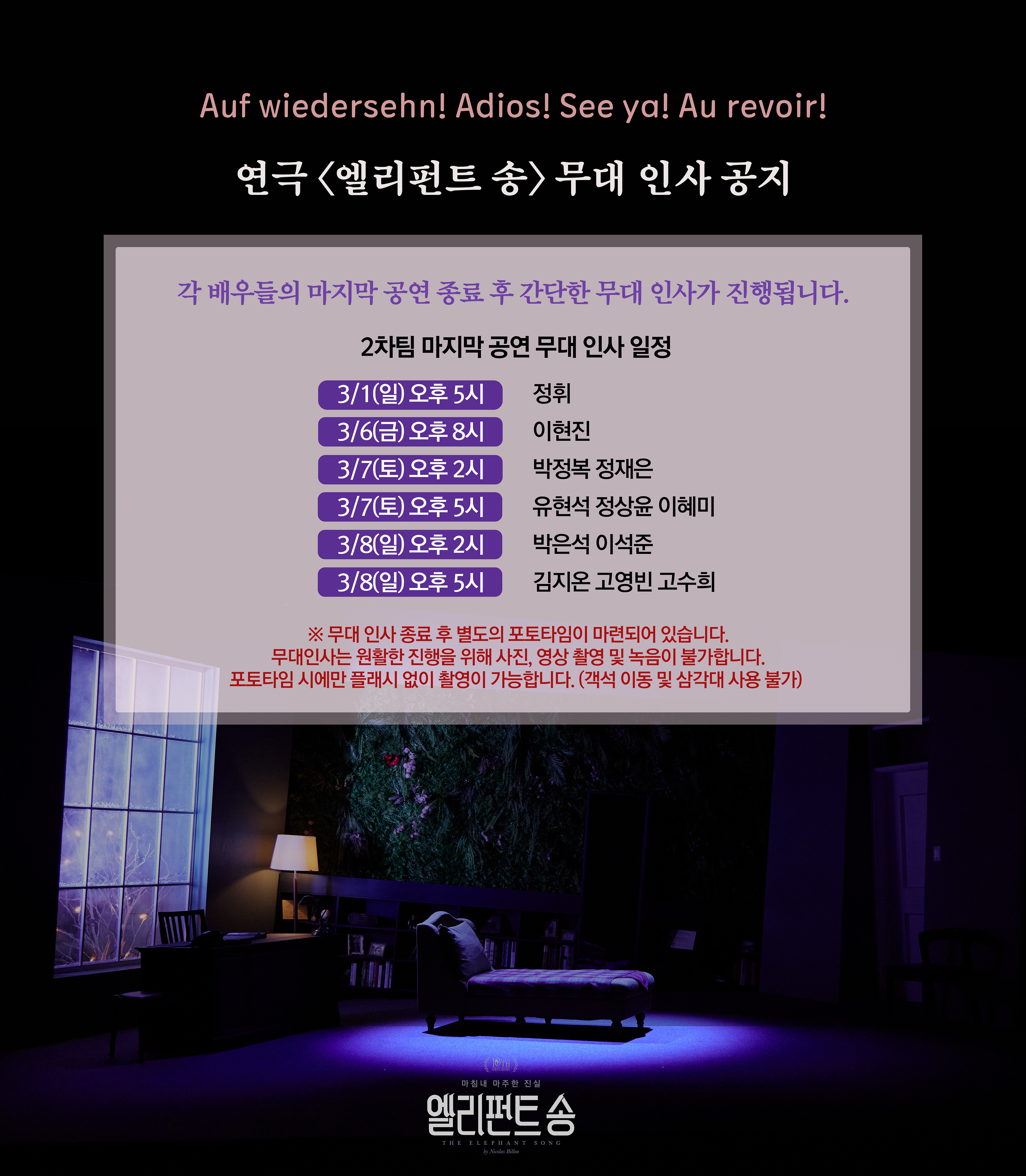 * 2/16(월), 3/2(월) 2시, 5시 공연 있음