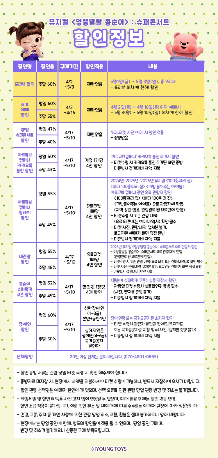 - 특정 기간, 특정 공연일에만 판매하는 가격이 있으니 예매 전 [가격 전체 보기]를 눌러 확인해 주세요.
