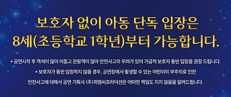 화~금 11시, 14시 / 주말&공휴일 11시, 14시, 16시 30분 / 월 공연없음