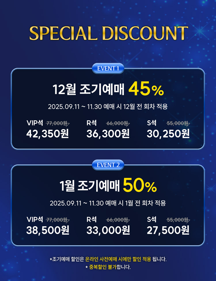 - 특정 기간, 특정 공연일에만 판매하는 가격이 있으니 예매 전 [가격 전체 보기]를 눌러 확인해 주세요.