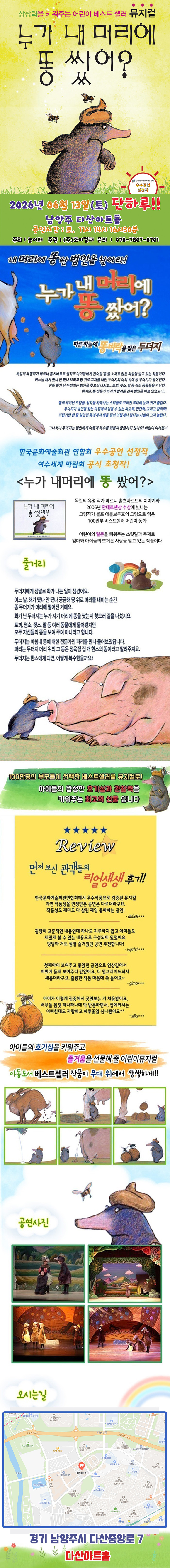 2026 베스트셀러 뮤지컬 〈누가 내 머리에 똥 쌌어?〉 - 남양주