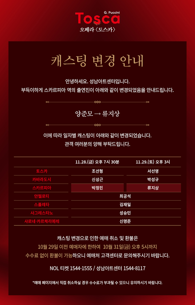 - 관람일 2일전 ~ 취소기한까지: 티켓금액의 30%