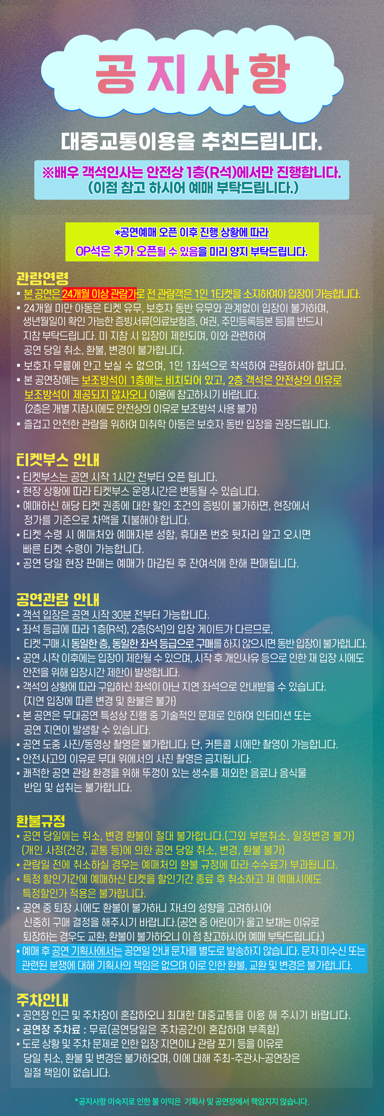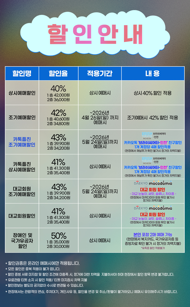 예매가능시간: 전회차 공연관람 전 목요일 오후 5시까지