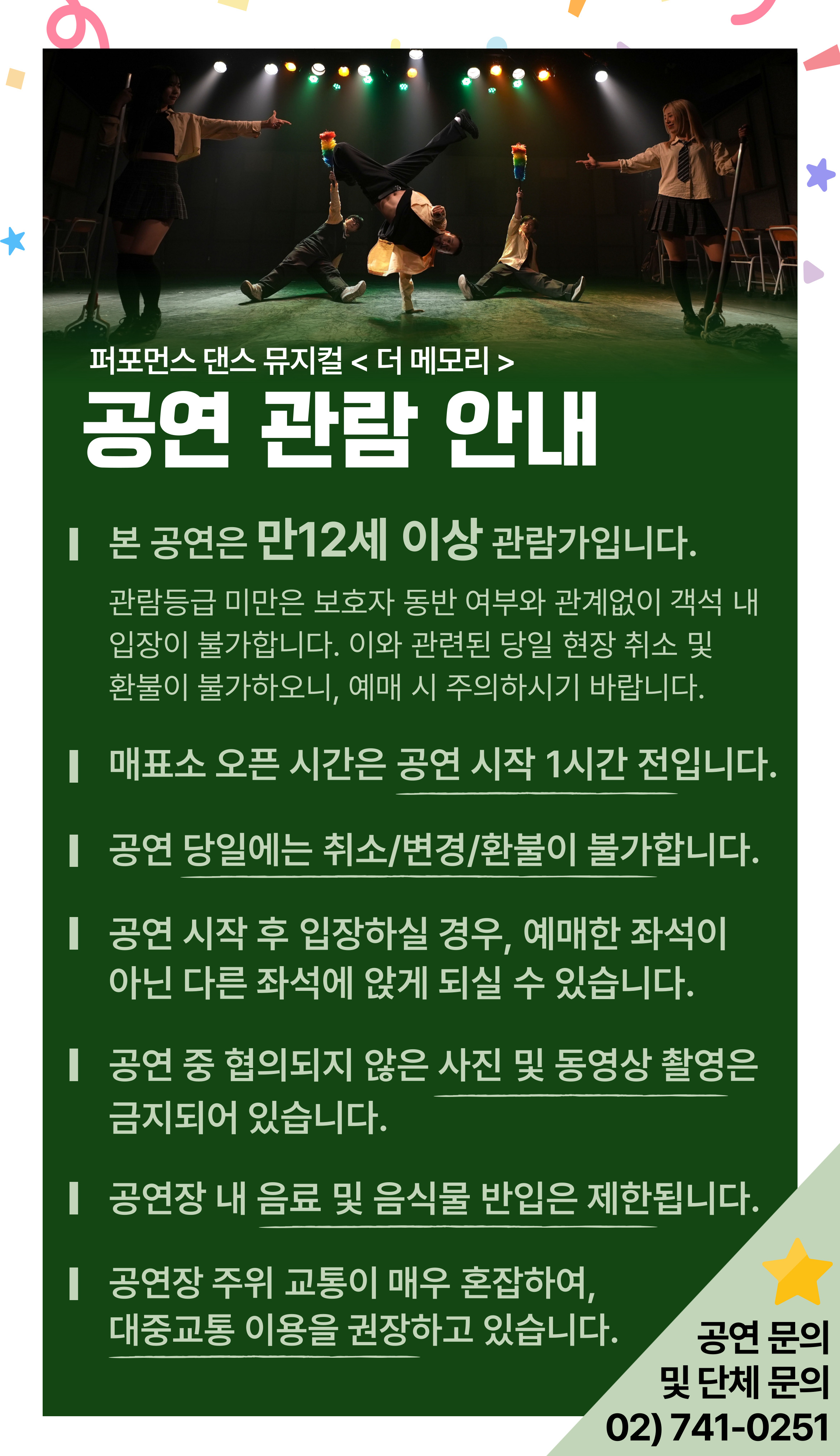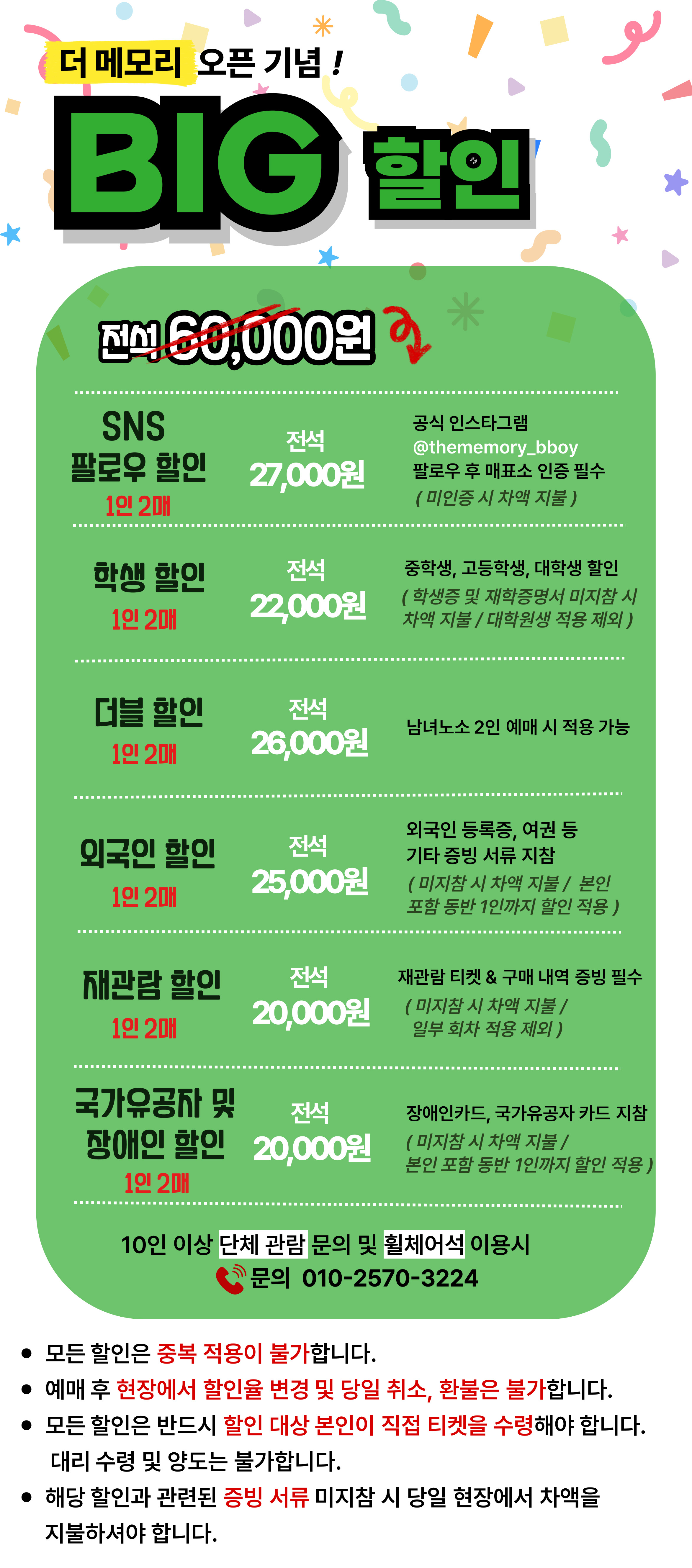 - 관람일 2일전 ~ 취소기한까지: 티켓금액의 30%