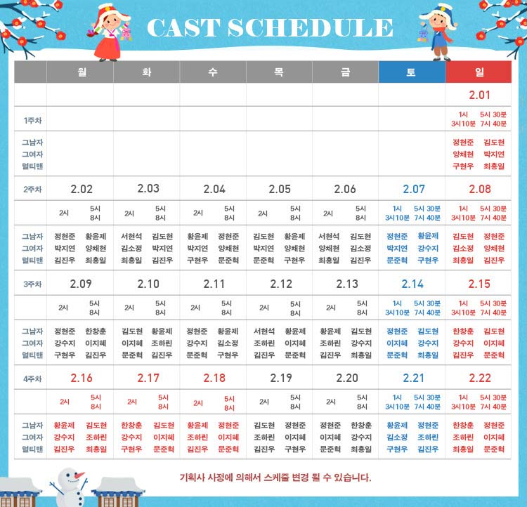 캐스팅 변경으로 관람에 불편을 드려 죄송합니다.