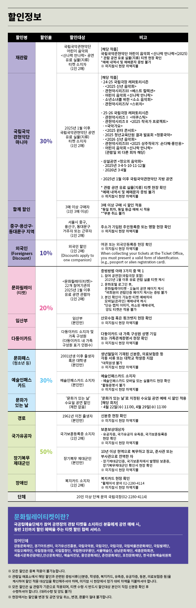 - 관람일 2일전 ~ 취소기한까지: 티켓금액의 30%