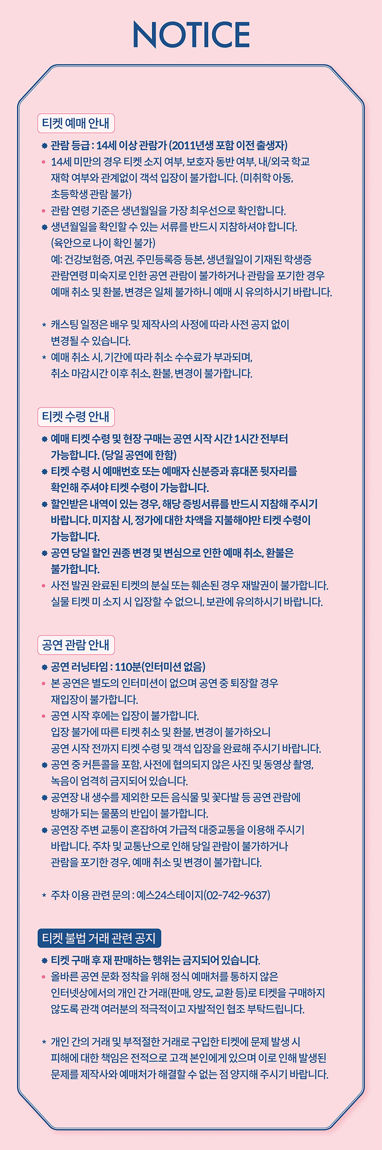 - 예매 후 7일 이내 취소시 티켓 금액 전액이 환불됩니다.(예매 수수료 제외)