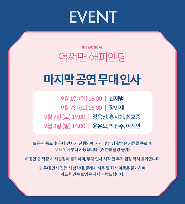 - 9월 8일(일) 18시 공연 없음