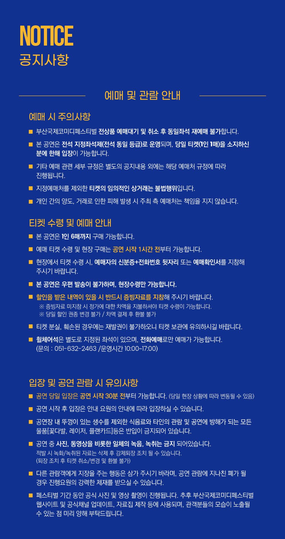- 예매 후 7일 이내 취소시 티켓 금액 전액이 환불됩니다.(예매 수수료 제외)