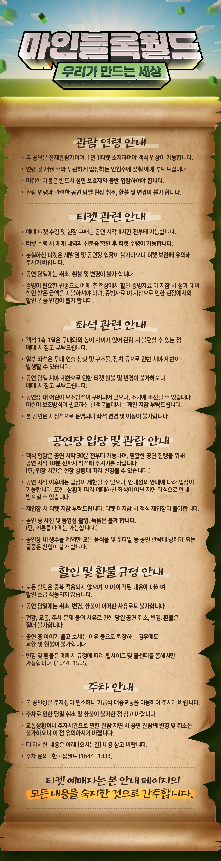 - 관람일 2일전 ~ 취소기한까지: 티켓금액의 30%
