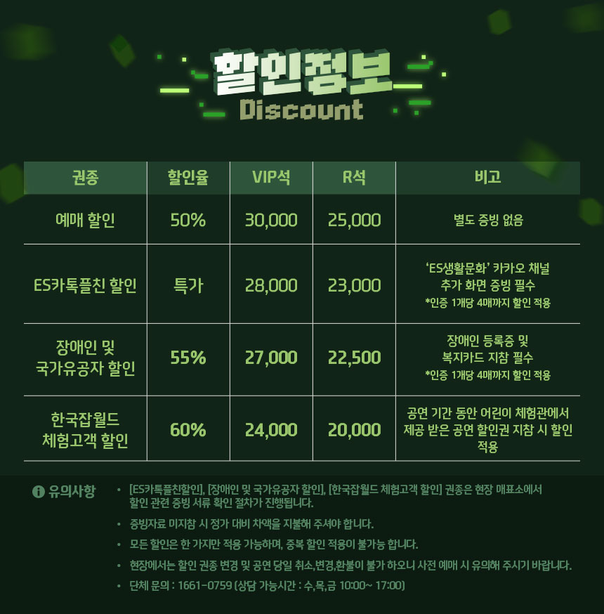 - 특정 기간, 특정 공연일에만 판매하는 가격이 있으니 예매 전 [가격 전체 보기]를 눌러 확인해 주세요.