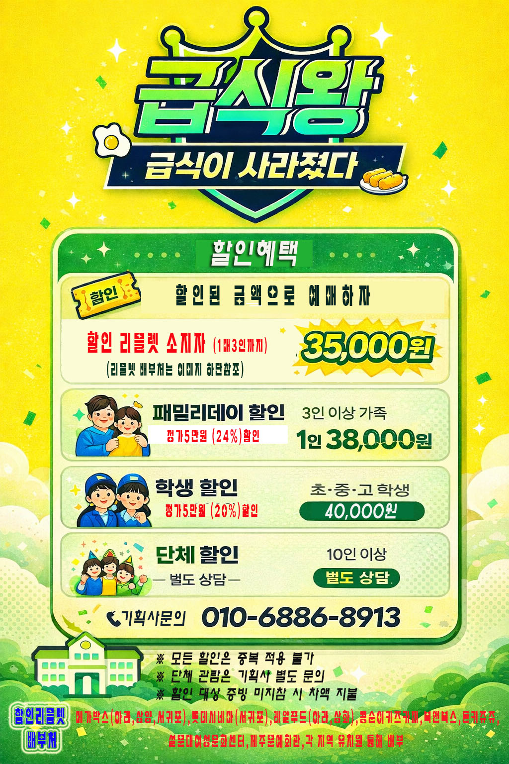 월~토요일 관람시: 전일 17시까지 / 일요일 관람시: 전일 11시까지