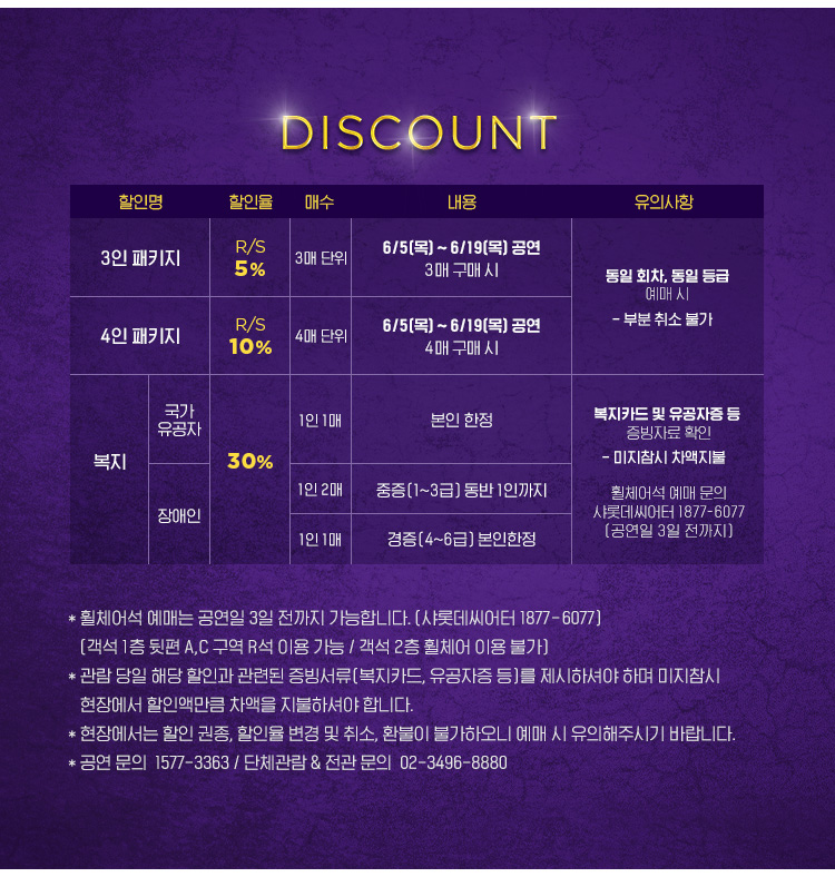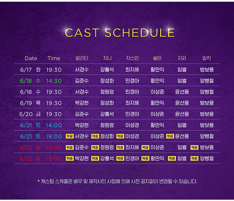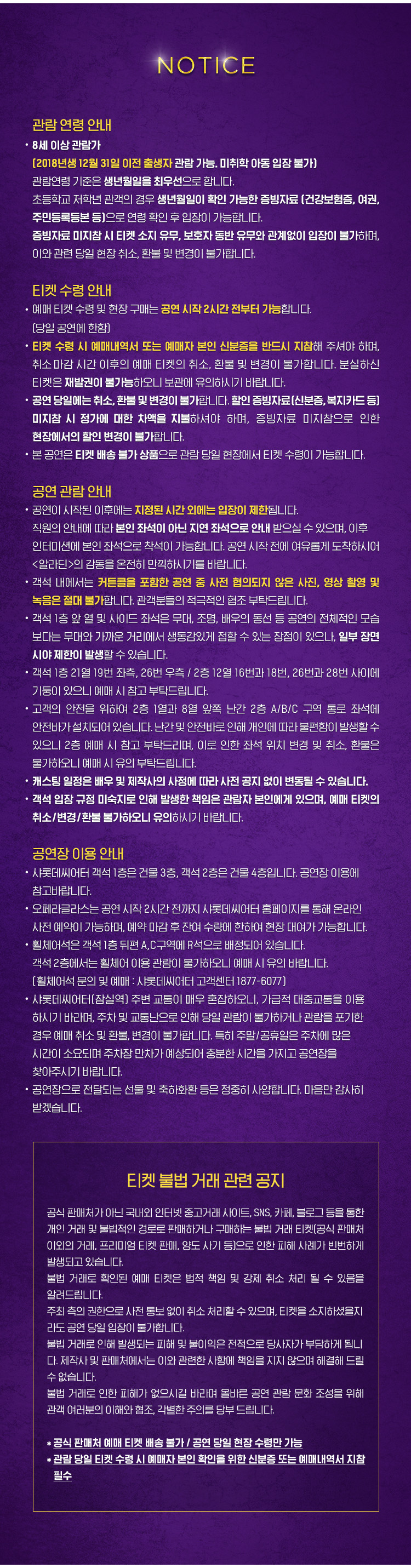 **특정 날짜의 공연 시간이 다를 수 있으므로, 반드시 공연 시간을 사전에 확인하여 주시기 바랍니다.