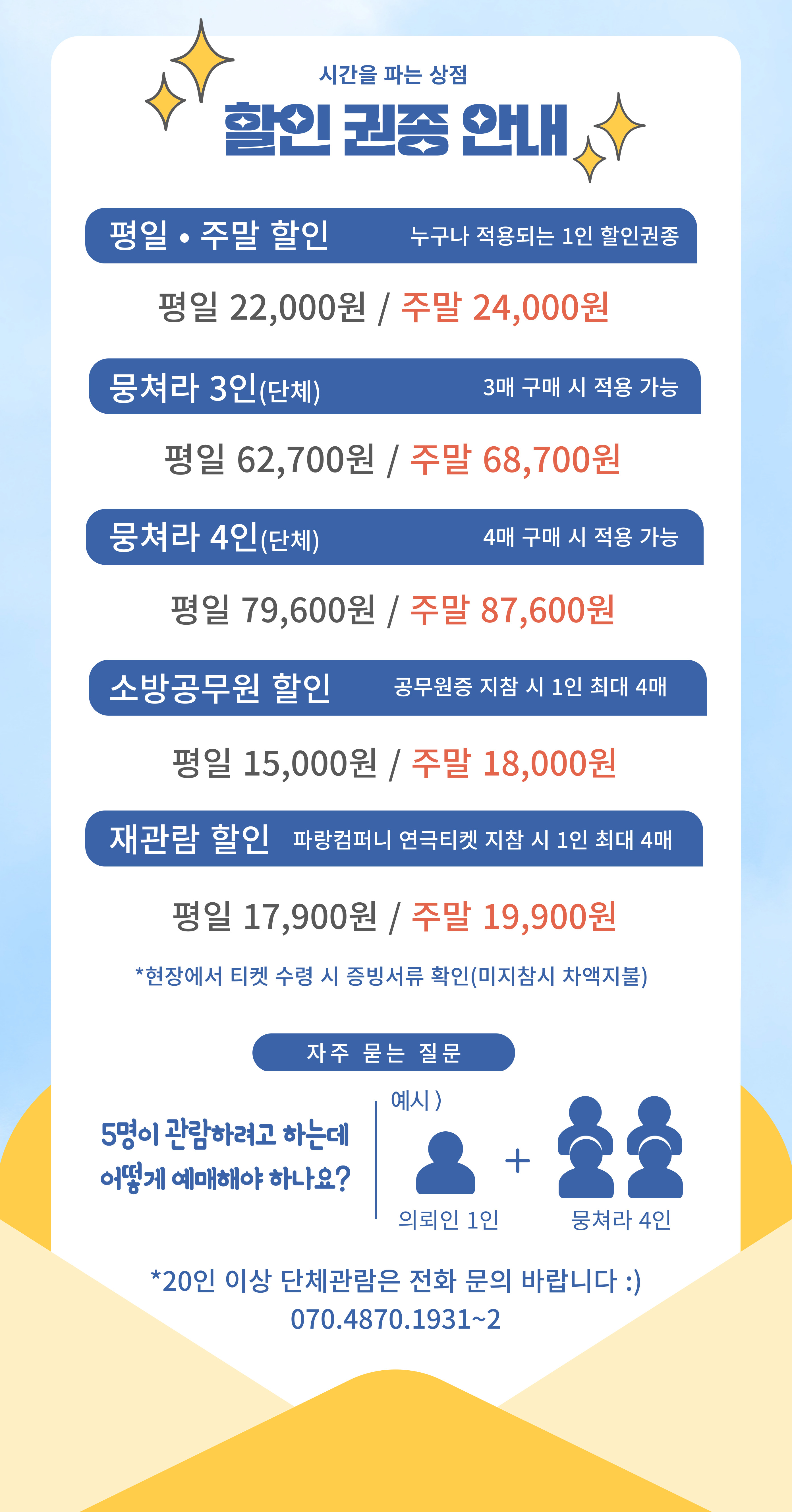 - 특정 기간, 특정 공연일에만 판매하는 가격이 있으니 예매 전 [가격 전체 보기]를 눌러 확인해 주세요.