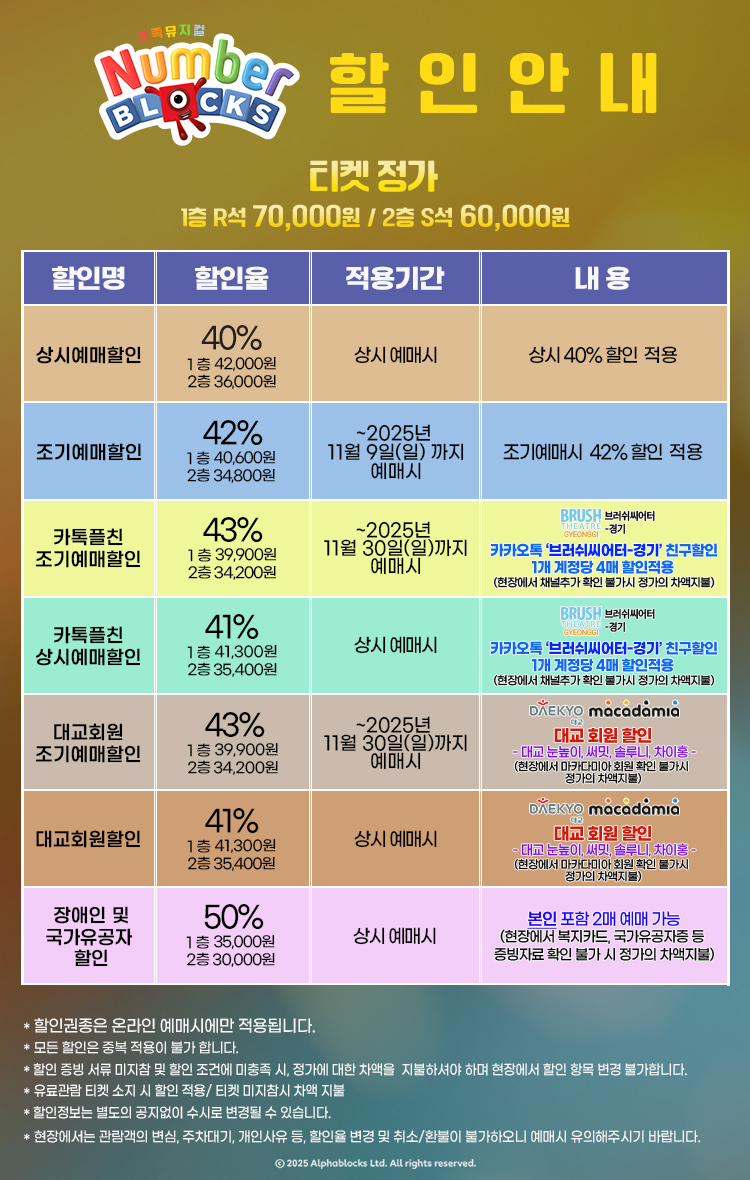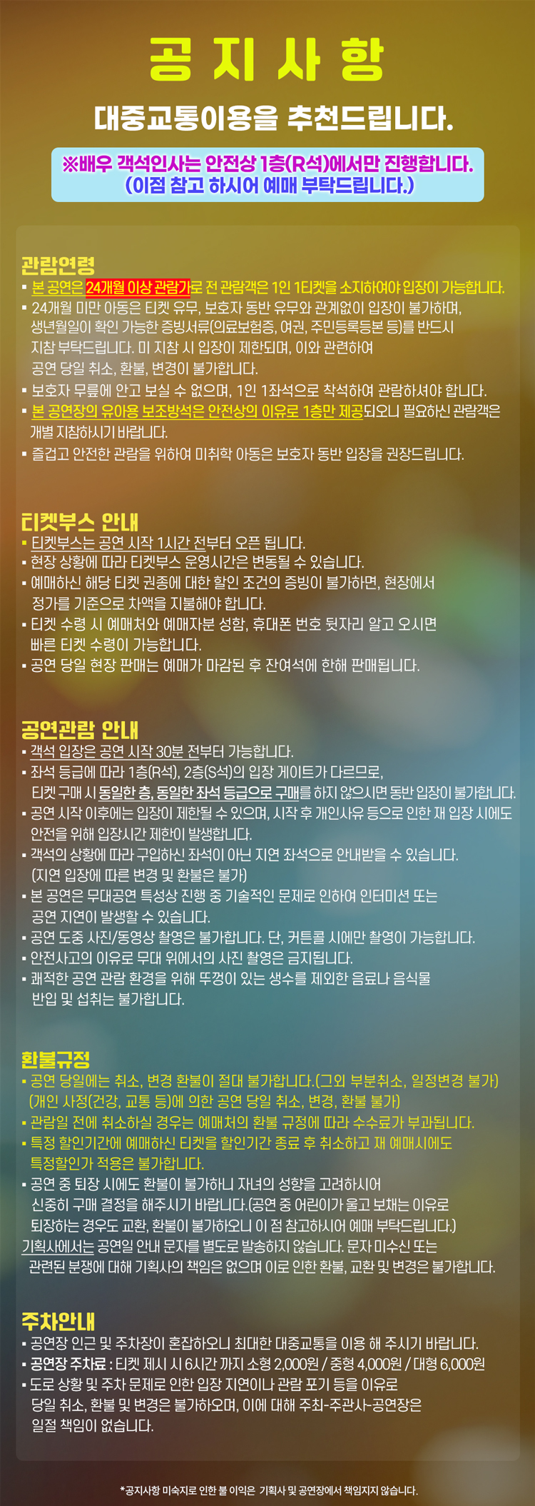 예매가능시간: 전회차 공연관람 전 목요일 오후 5시까지