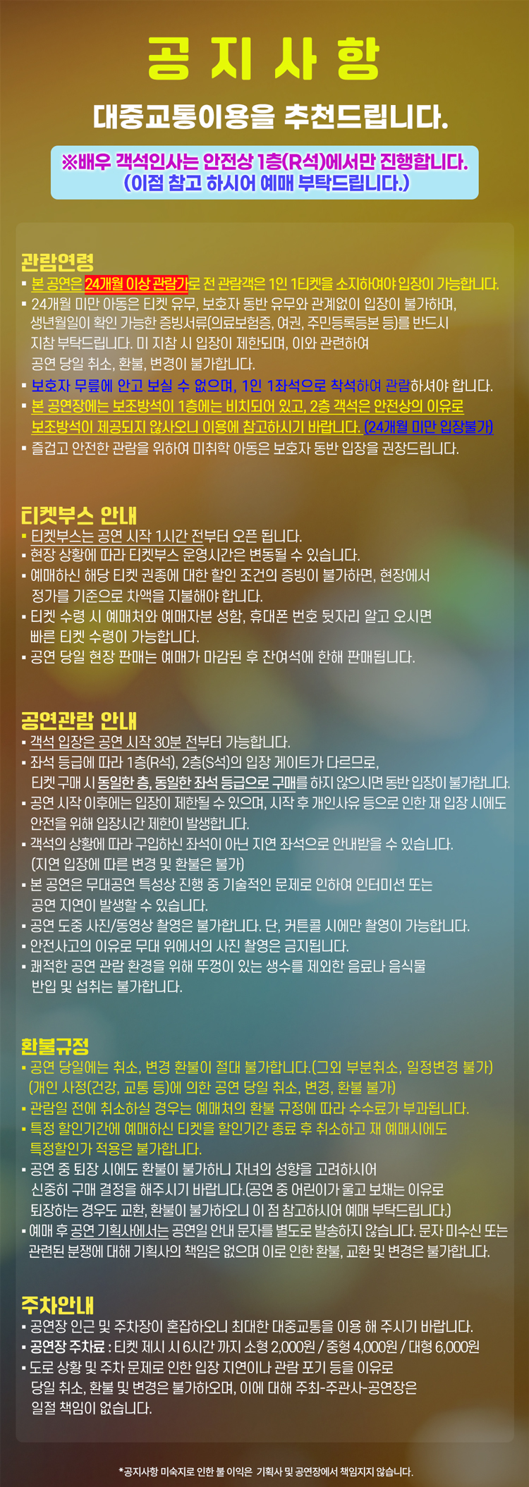 예매가능시간: 전회차 공연관람 전 목요일 오후 5시까지