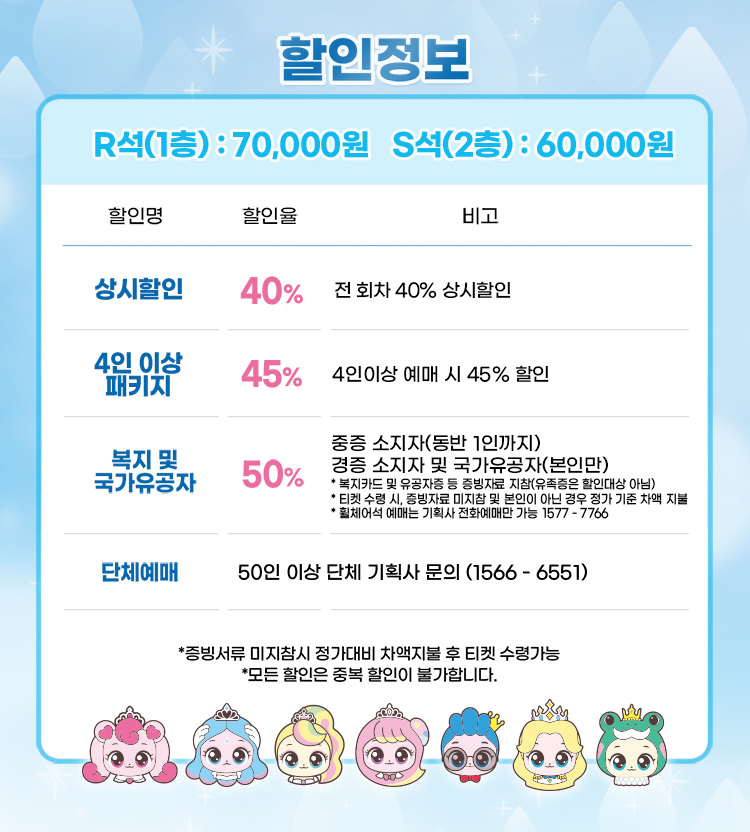 - 예매 후 7일 이내 취소시 티켓 금액 전액이 환불됩니다.(예매 수수료 제외)
