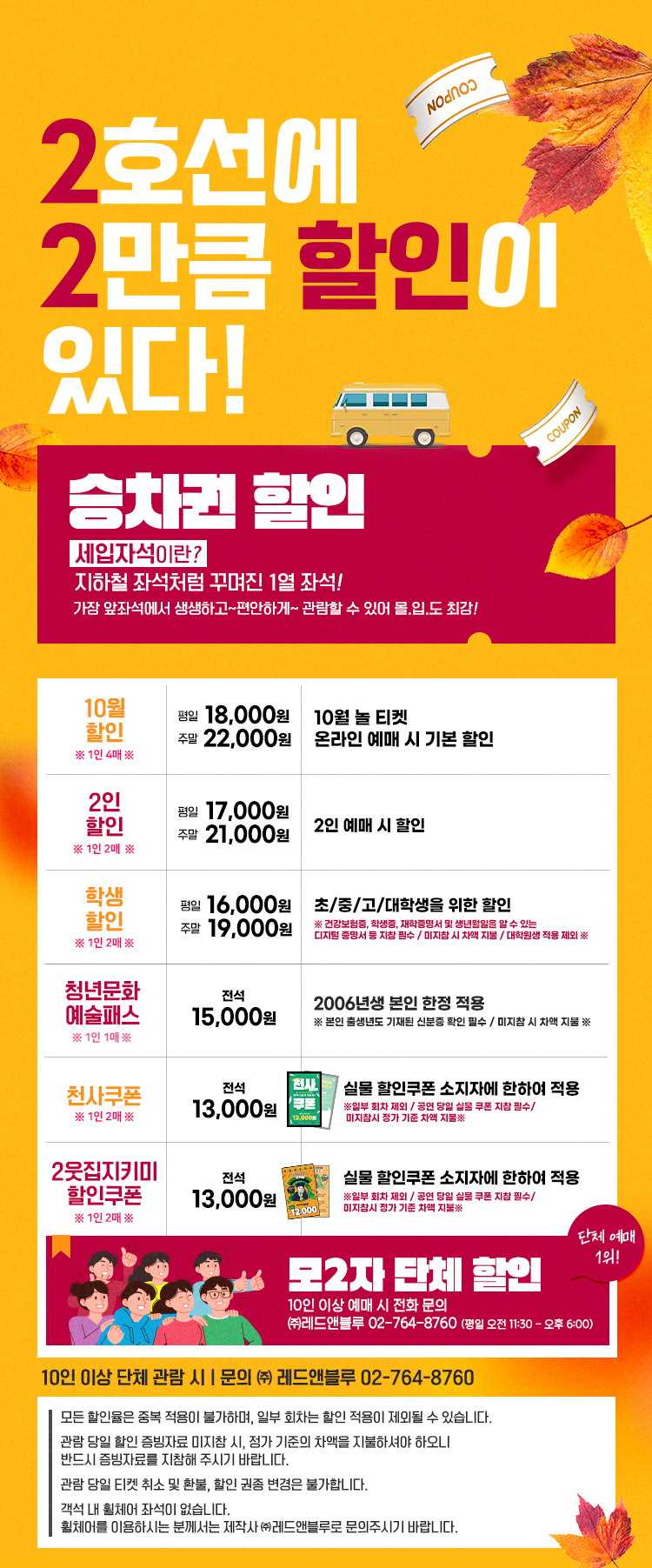- 예매 후 7일 이내 취소시 티켓 금액 전액이 환불됩니다.(예매 수수료 제외)
