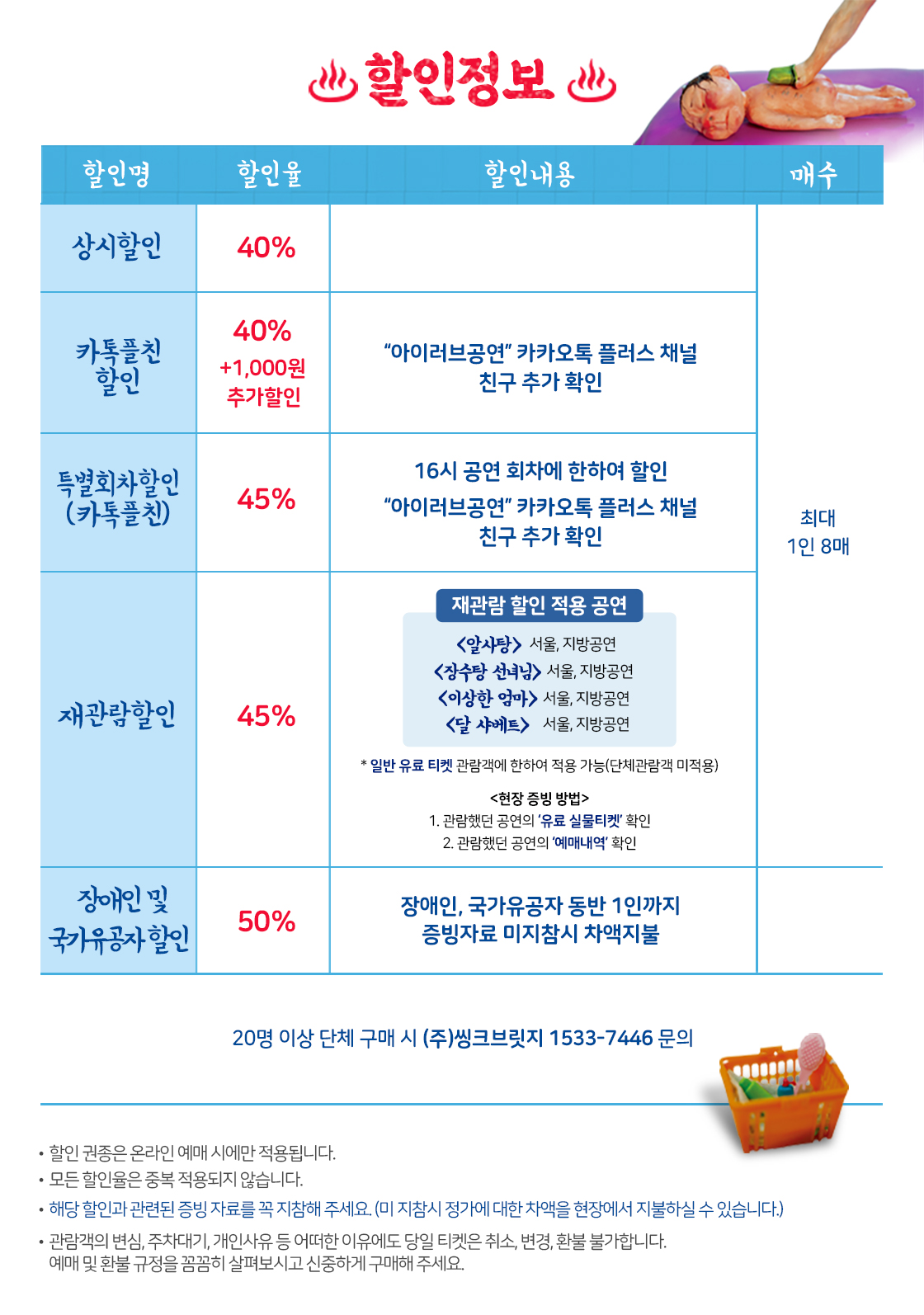 - 관람일 2일전 ~ 취소기한까지: 티켓금액의 30%