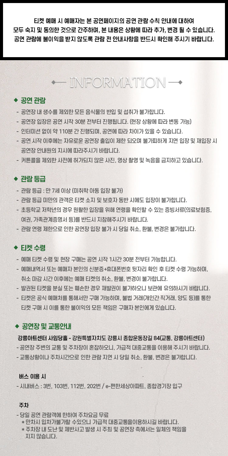 - 특정 기간, 특정 공연일에만 판매하는 가격이 있으니 예매 전 [가격 전체 보기]를 눌러 확인해 주세요.