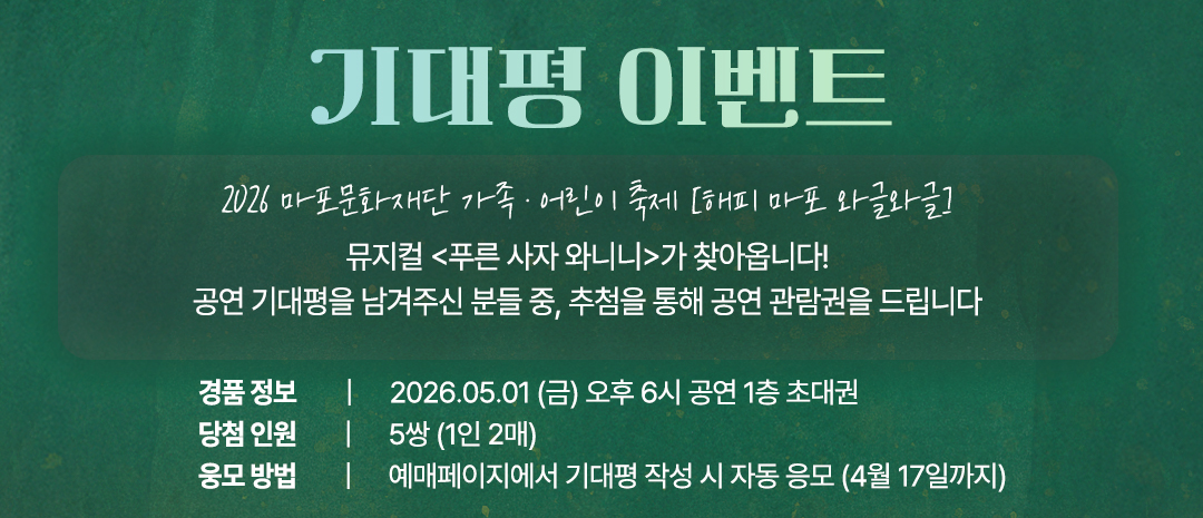 ![[해피 마포 와글와글] 뮤지컬 〈푸른 사자 와니니〉](https://ticketimage.interpark.com/Play/image/large/26/26002762_p.gif)