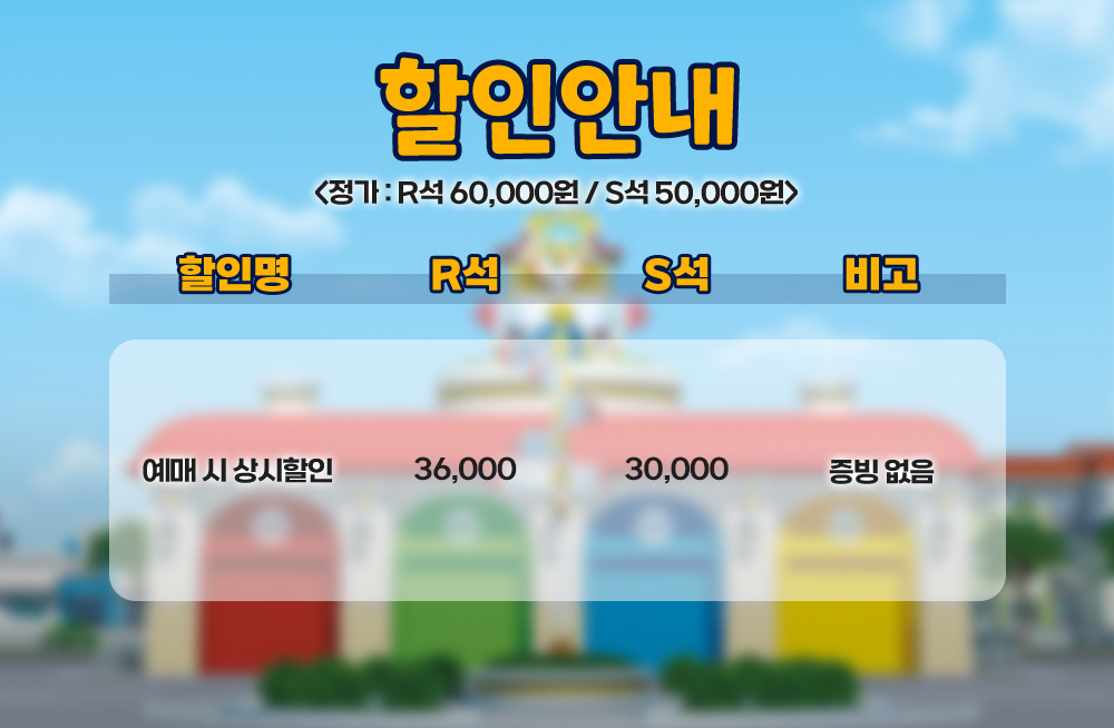 월~토요일 관람시: 전일 17시까지 / 일요일 관람시: 전일 11시까지
