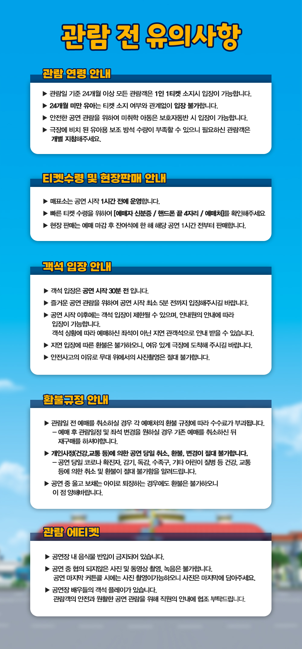 - 예매 후 7일 이내 취소시 티켓 금액 전액이 환불됩니다.(예매 수수료 제외)