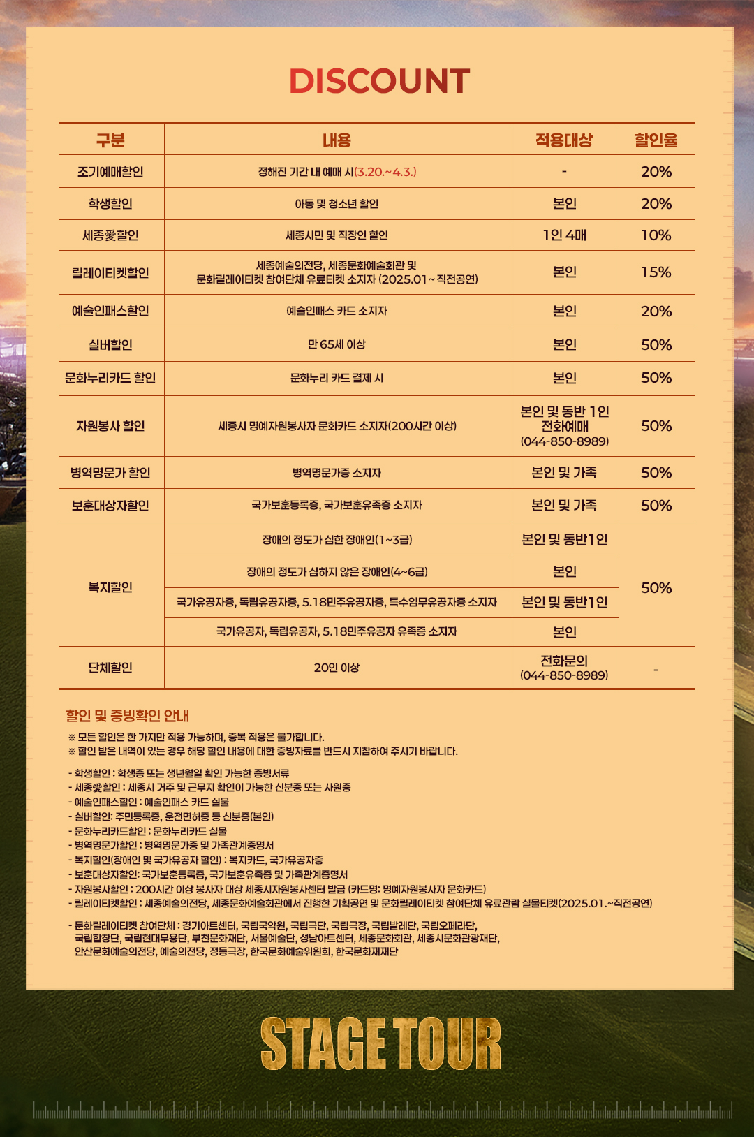 - 관람일 2일전 ~ 취소기한까지: 티켓금액의 30%