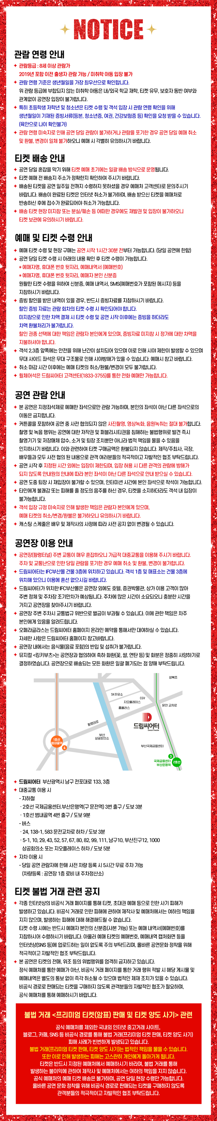 - 관람일 2일전 ~ 취소기한까지: 티켓금액의 30%