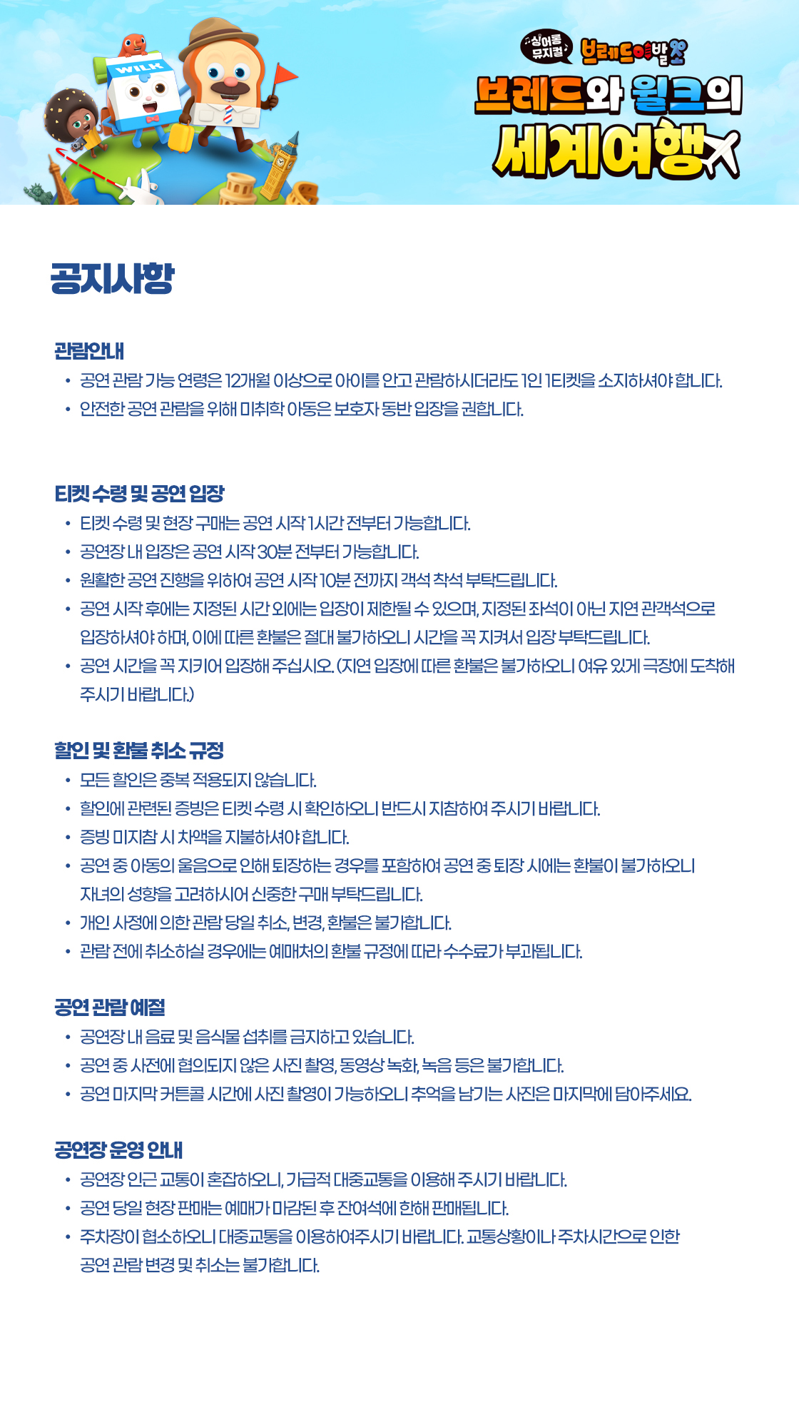 - 예매 후 7일 이내 취소시 티켓 금액 전액이 환불됩니다.(예매 수수료 제외)