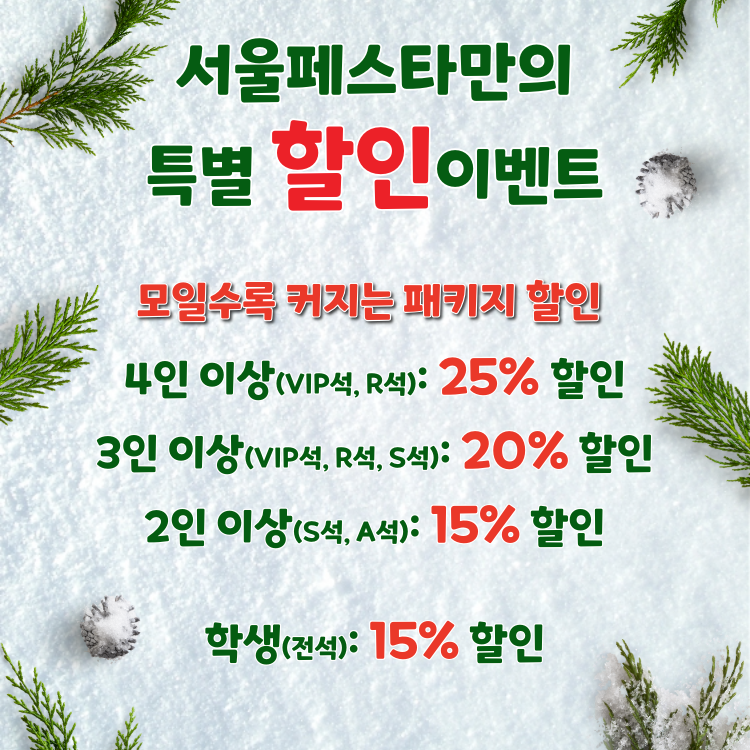 - 특정 기간, 특정 공연일에만 판매하는 가격이 있으니 예매 전 [가격 전체 보기]를 눌러 확인해 주세요.