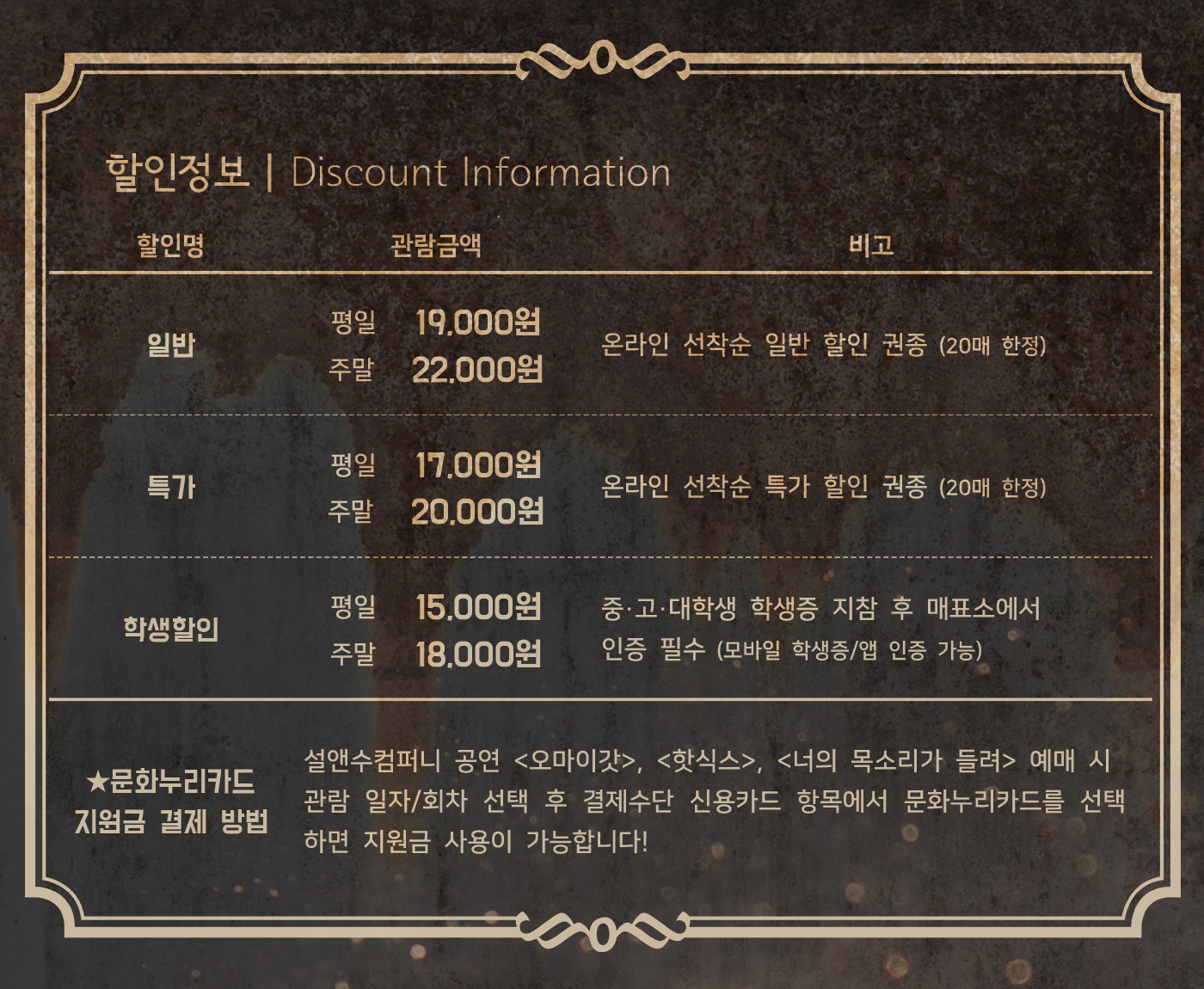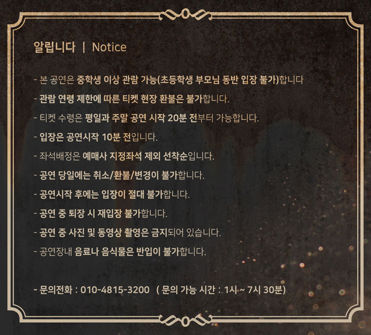 - 특정 기간, 특정 공연일에만 판매하는 가격이 있으니 예매 전 [가격 전체 보기]를 눌러 확인해 주세요.