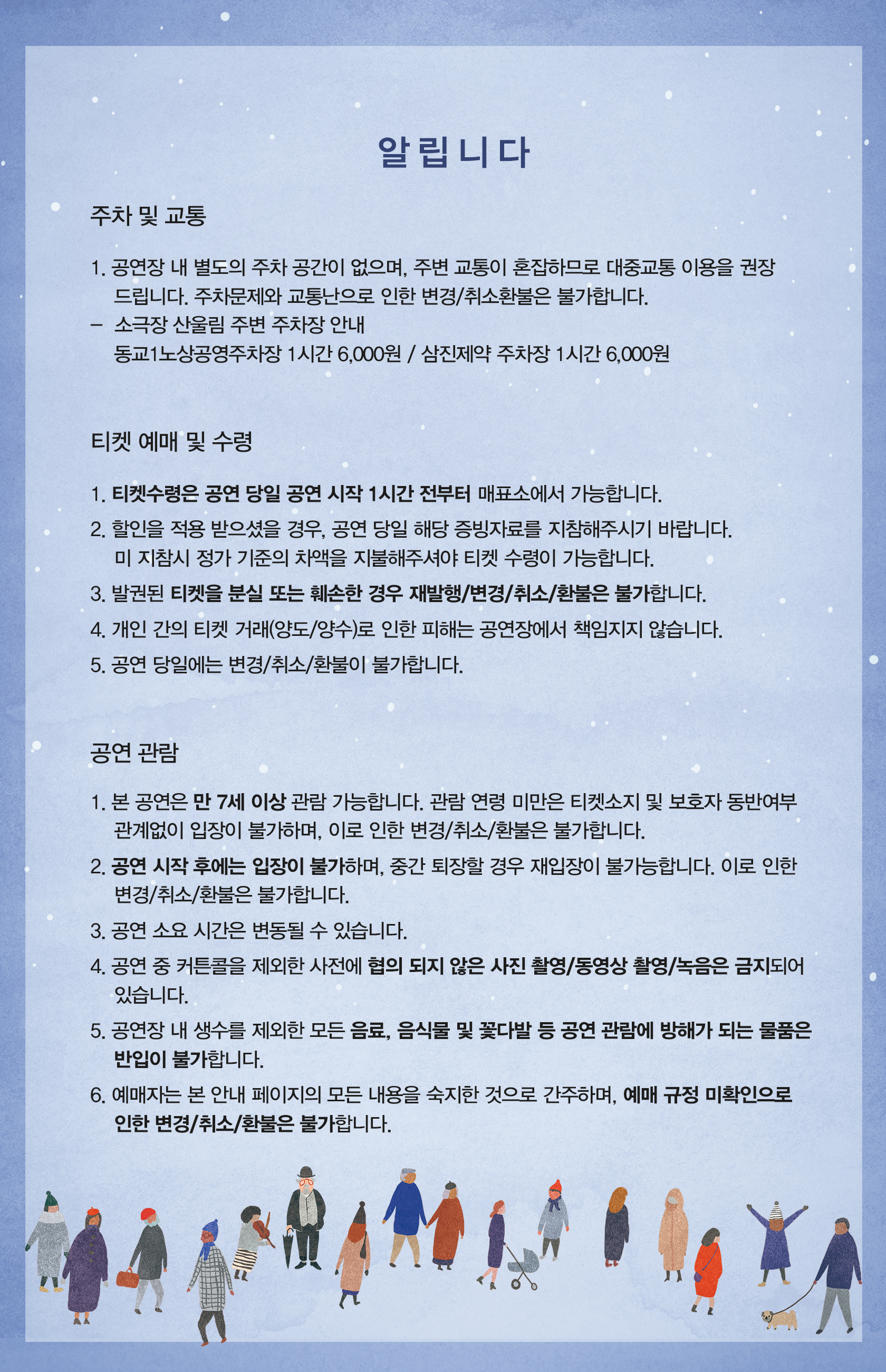 - 예매 후 7일 이내 취소시 티켓 금액 전액이 환불됩니다.(예매 수수료 제외)