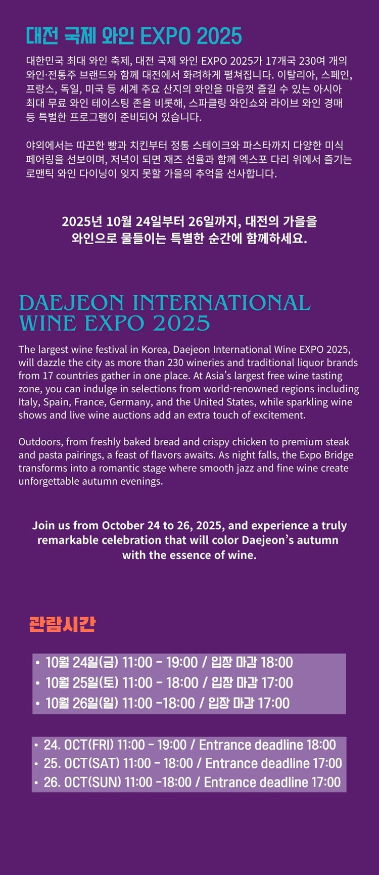 2025년 10월 24일부터 26일까지, 대전의 가을을 와인으로 물들이는 특별한 순간에 함께하세요.