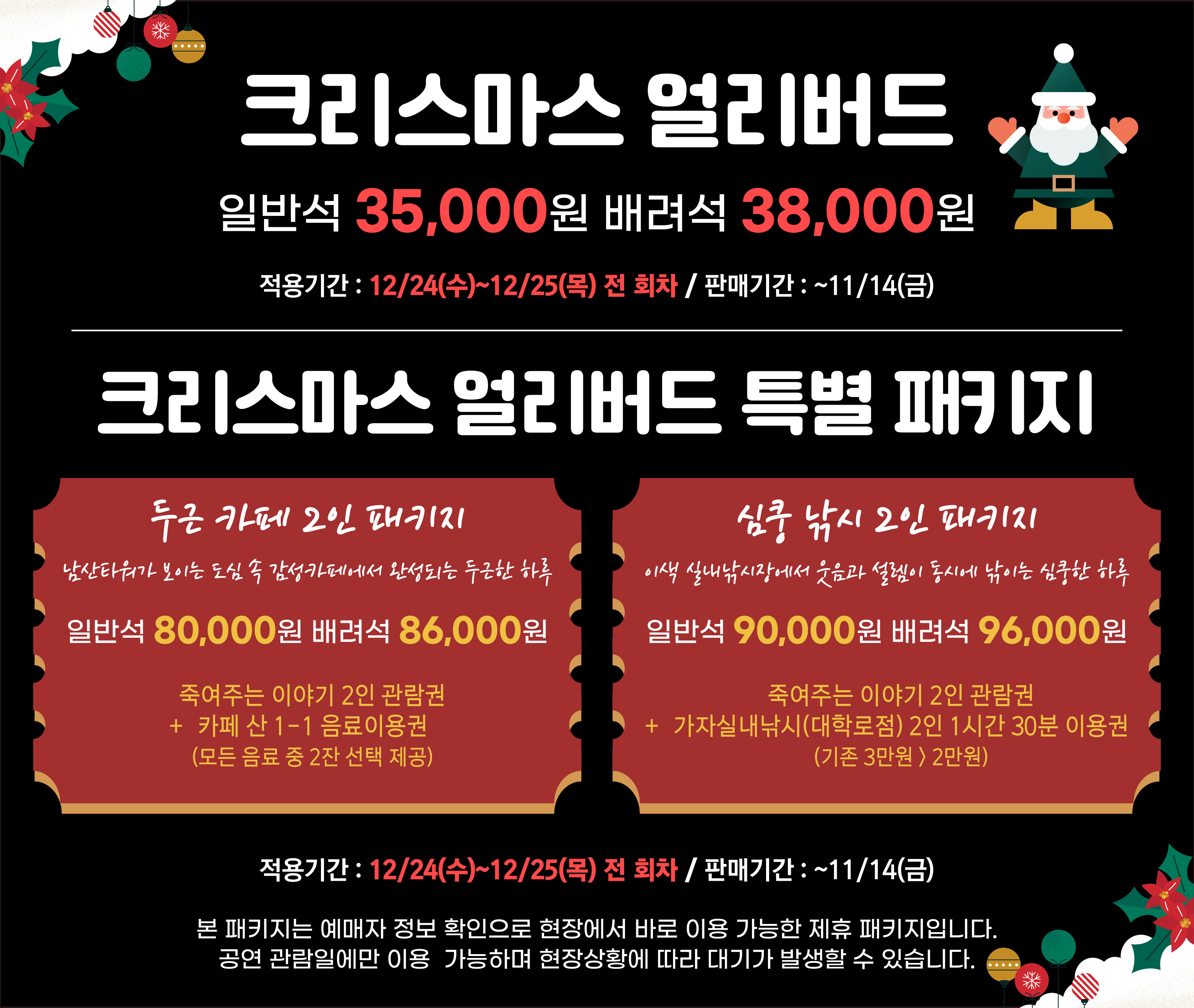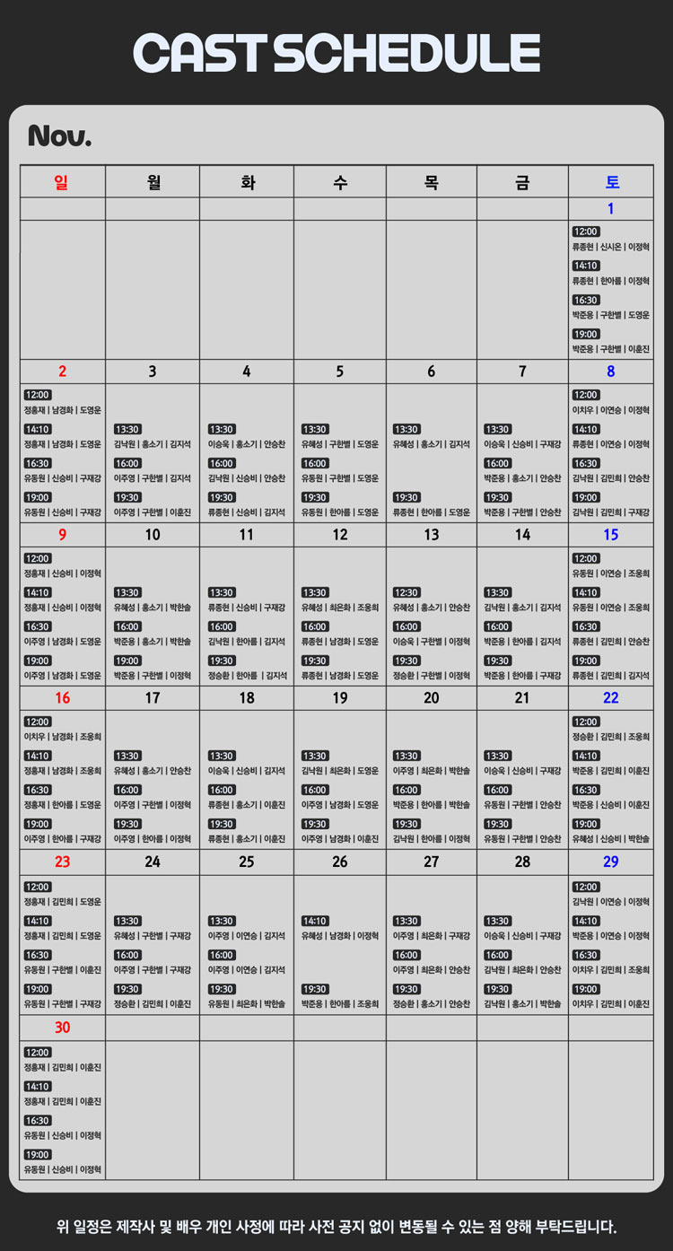*일부 공연 시간이 상이하니 확인하신 후 예매 바랍니다.