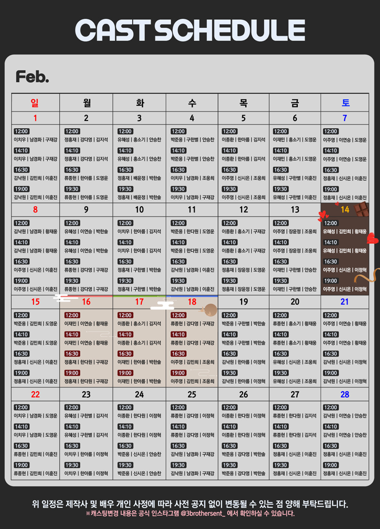 * 특이회차 : 3/2(월) 12시, 2시10분, 4시30분, 7시