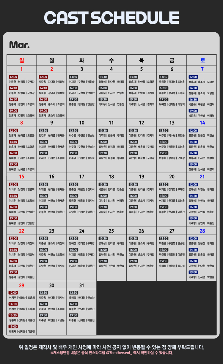* 특이회차 : 3/2(월) 12:00, 14:10, 16:30, 19:00
