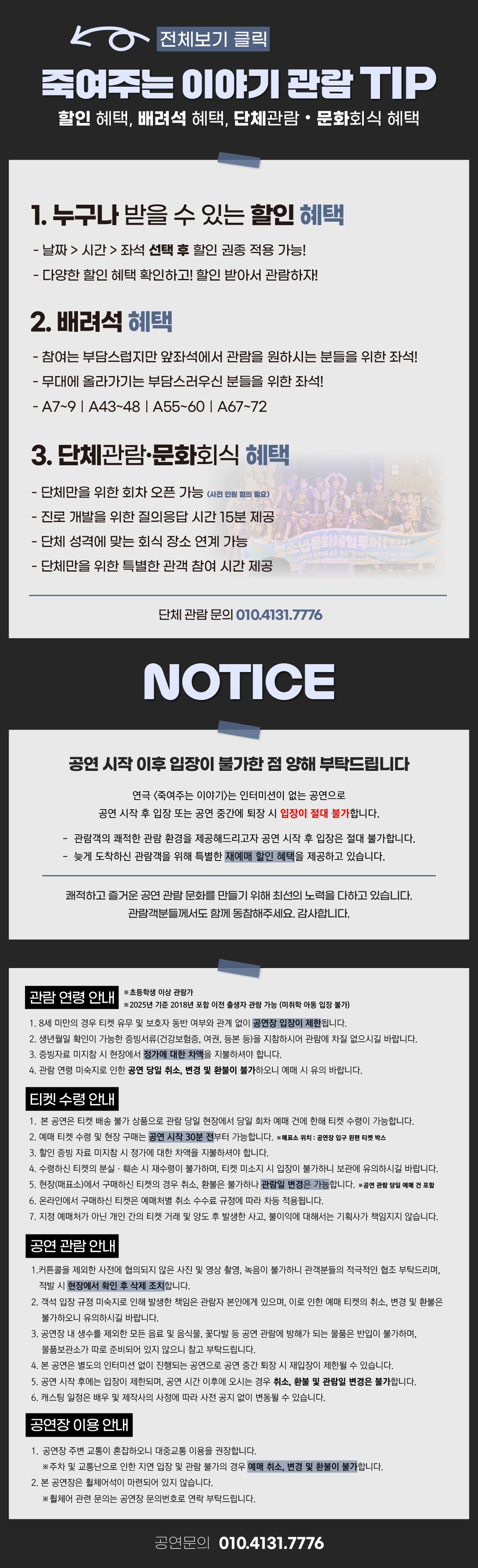 *연극 <죽여주는 이야기> 공식 블로그 : https://blog.naver.com/hunjehun