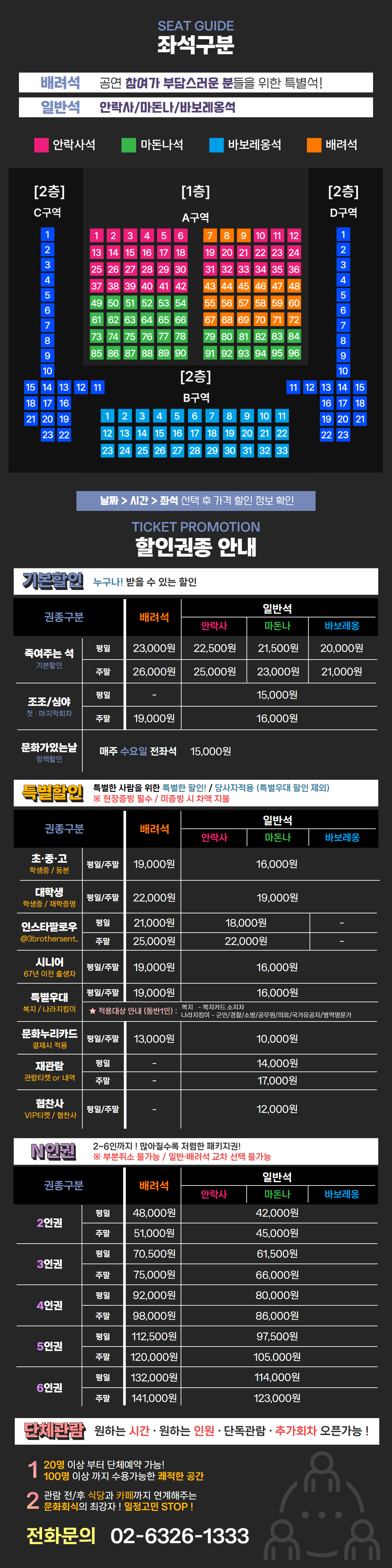 - 특정 기간, 특정 공연일에만 판매하는 가격이 있으니 예매 전 [가격 전체 보기]를 눌러 확인해 주세요.