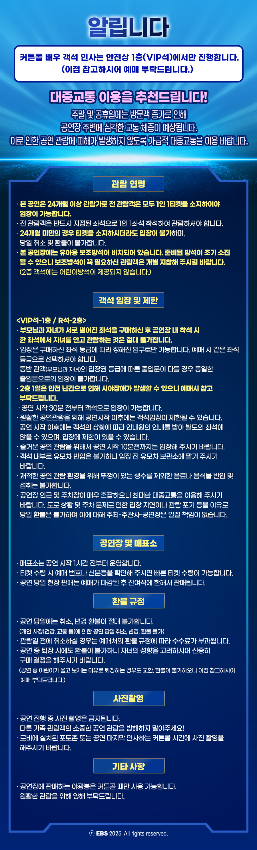 - 예매 후 7일 이내 취소시 티켓 금액 전액이 환불됩니다.(예매 수수료 제외)